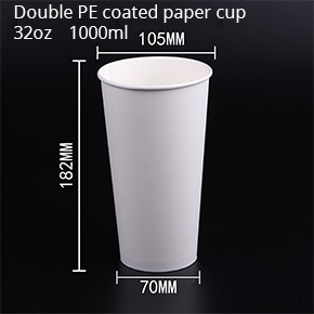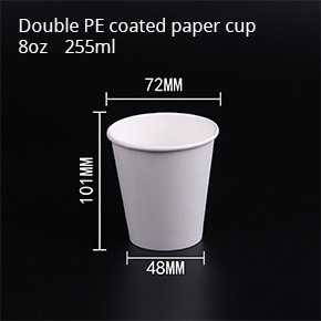| Double PE coated cup | Specification | Capacity(ml) | Upper diameter (mm) | Bottom width (mm) | Height(mm) | Quantity/bag (pcs) | Quantity/box (pcs) | Carton size (cm) |