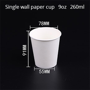 | Single wall paper cup | Specification | Capacity(ml) | Upper diameter (mm) | Bottom width (mm) | Height(mm) | Quantity/bag (pcs) | Quantity/box (pcs) | Carton size (cm) |
